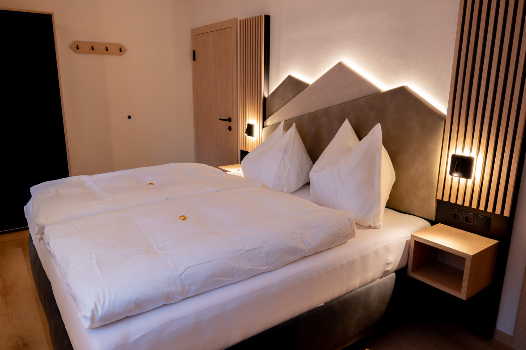 3 Schlafzimmer mit gemütlichem Boxspringbett und jeweils einem eigenen Badezimmer.