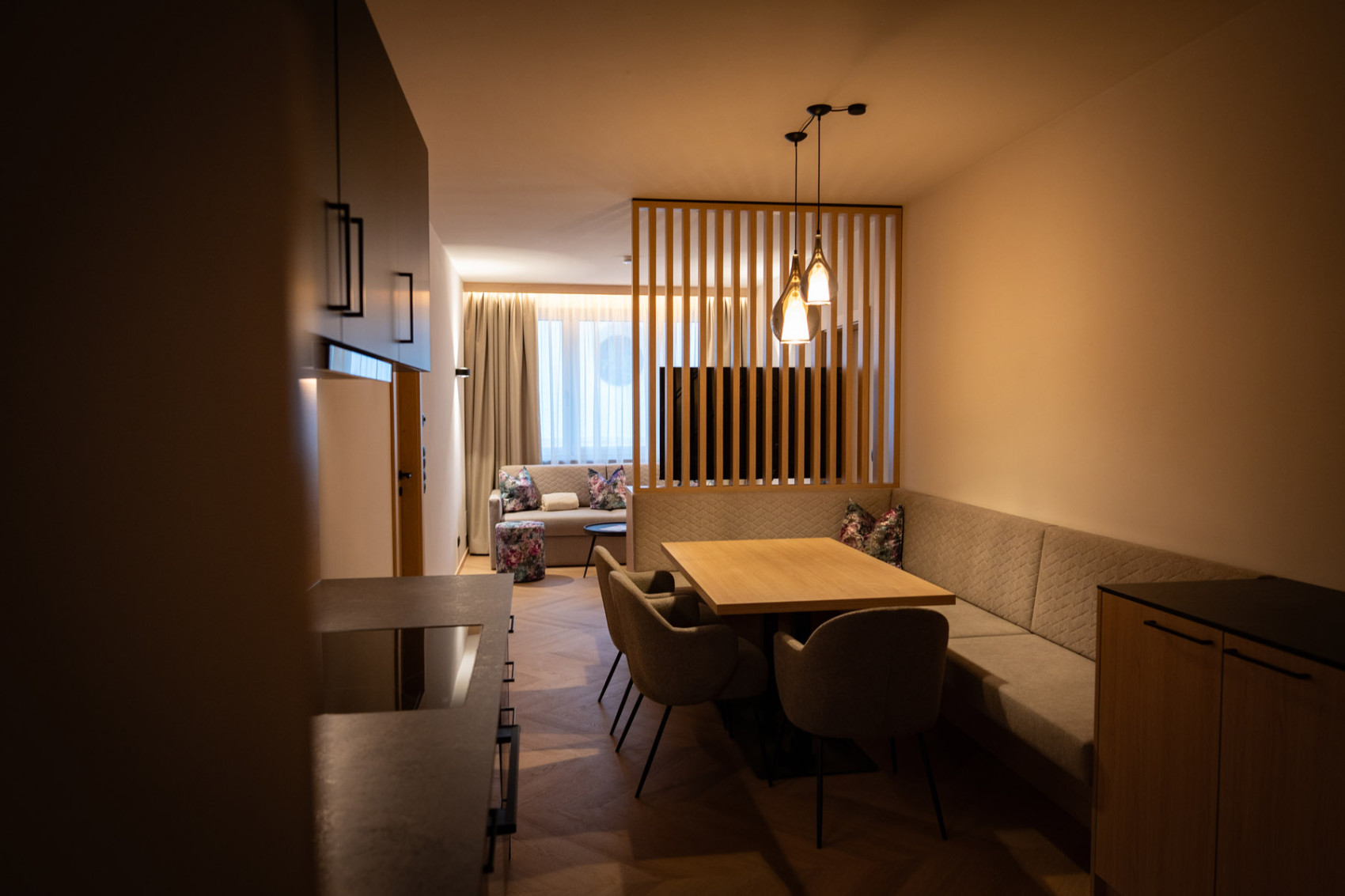 Unser Apartment Roggspitze im neuen FRANZ alpine living ist ein stilvoll eingerichtetes, barrierefreundliches Apartment im Erdgeschoss, welches modernen Komfort mit alpinem Charme vereint. Auf großzügigen 88 m² bietet die Unterkunft ausreichend Platz für 6 bis 7 Personen und eignet sich perfekt für Familien oder Gruppen, die einen erholsamen Aufenthalt im Zentrum von St. Anton am Arlberg verbringen möchten.